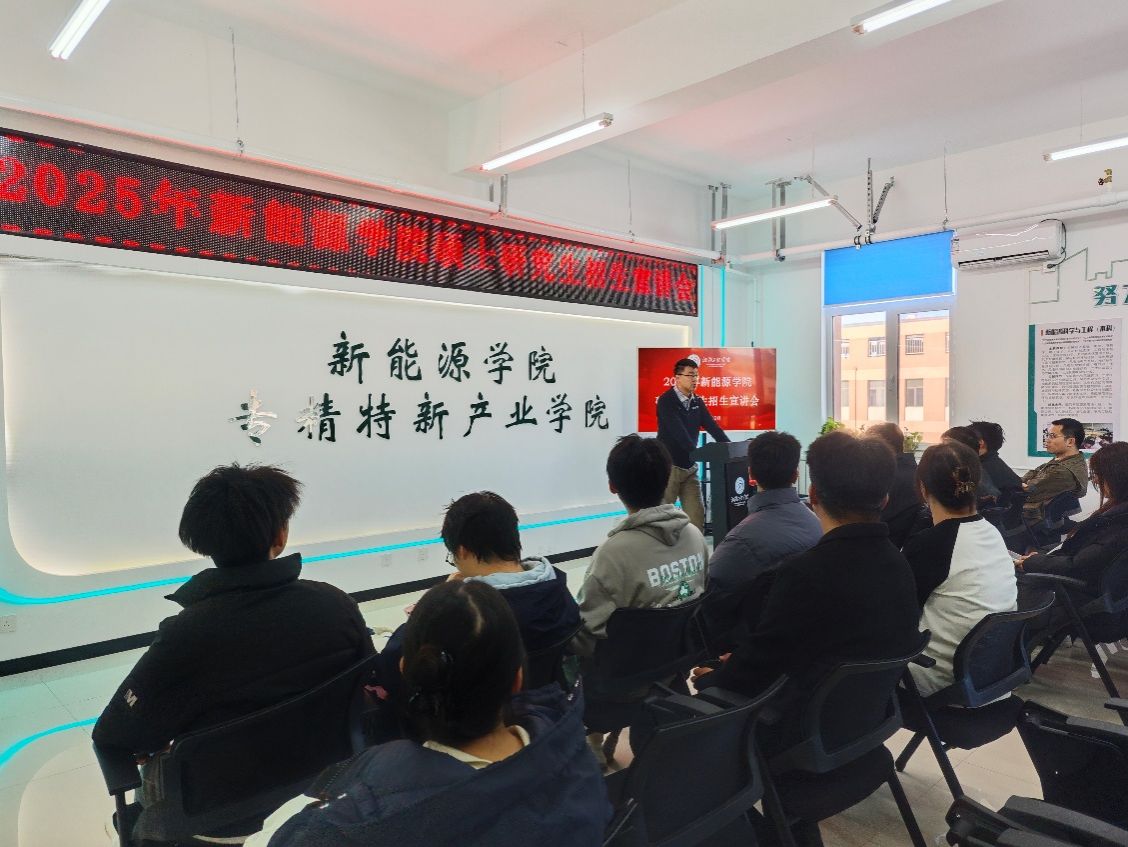 为帮助学生明晰考研方向、了解招生政策、解答备考疑惑,2025年10月30日,新能源学院在新型电力实训基地521组织开展研究生招生宣讲会,科研副院长姜河、储能科学与工程系主任赵德鹏、部分辅导员及大三大四年级意向考研学生共同参会。
