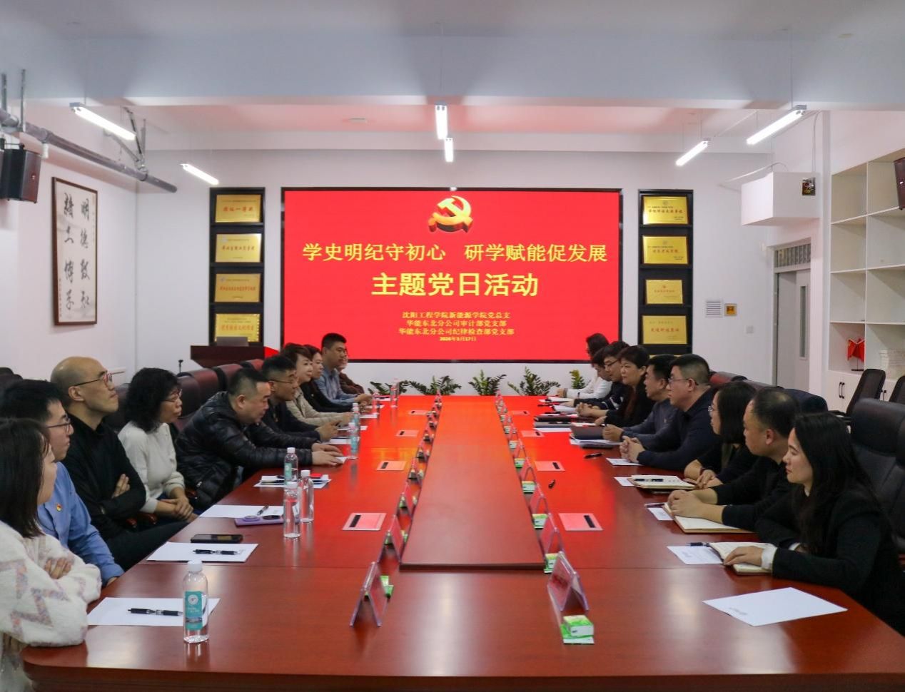 为深入学习贯彻党的二十届四中全会精神,全面落实新时代党的建设总要求,以及《中共沈阳工程学院委员会关于推动基层党建与业务工作深度融合的实施意见(试行)》精神,推动党史学习教育常态化长效化,深化校企合作、产教融合,3月17日,新能源学院党总支联合华能东北分公司审计部党支部、纪律检查部党支部共同开展“学史明纪守初心,研学赋能促发展”主题党日活动。活动通过实地研学、参观调研和座谈交流等形式,引导党员在学思践悟中坚定理想信念,在交流合作中凝聚发展合力。